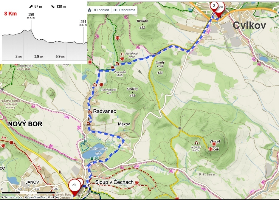 Kdo nechce jít do Maxova a do Sloupu v Čechách - lze jít z Radvance po cykloztezce č.3056 do Nového Boru( 3,5 km ), celkem =10 Km. Doporučuji.